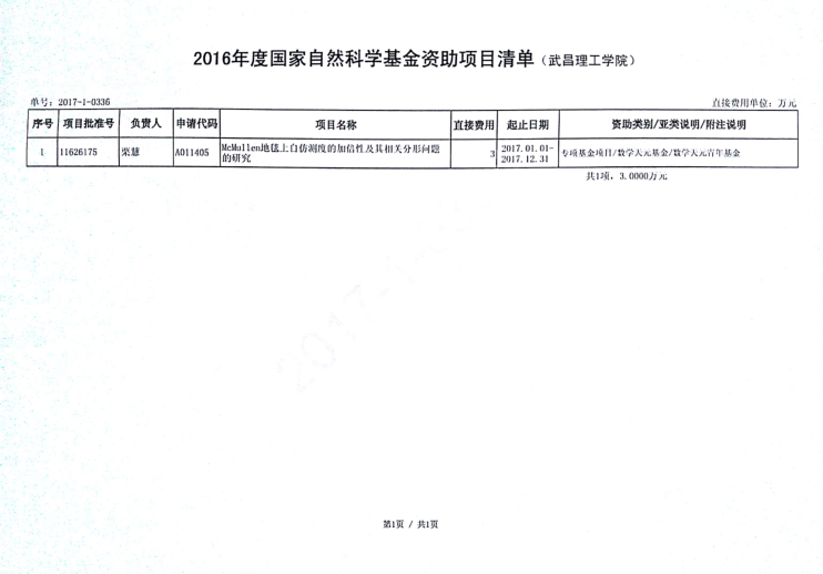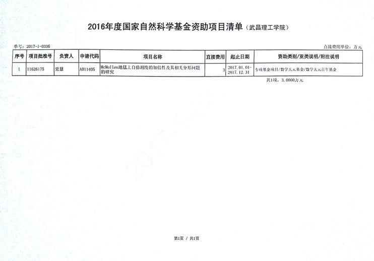 我校信息工程学院栗慧博士主持的《McMullen地毯上自仿测度的加倍性及其相关分形问题的研究》成功获批2016年度国家自然科学基金专项基金项目,实现了该校国家自然科学基金项目新的突破。