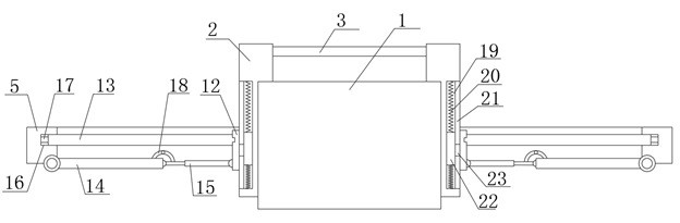 1.一种基于波浪荷载的海洋平台动力控制系统,包括勘探机构和牵引缆绳,其特征在于:所述勘探机构的外侧固定安装有筒形外罩,所述筒形外罩的外侧设置有环形板,所述筒形外罩的外壁设置有若干个滑动板,所述滑动板与环形板之间设置有上挡板、下挡板和推动杆,所述上挡板位于下挡板的上端面,所述下挡板的远离勘探机构的一端与环形板的内壁转动连接,所述推动杆的靠近勘探机构的一端与滑动板的外壁转动连接,所述下挡板与推动杆之间相对的一端转动连接,所述下挡板与推动杆的连接处设置有弹性橡胶杆,所述弹性橡胶杆的两端分别与下挡板和推动杆的顶部固定连接,所述弹性橡胶杆的内部设置有压力传感器用于测量下挡板和推动杆之间的角度变化,所述筒形外罩的顶部固定安装有固定杆,所述牵引缆绳的底端与固定杆的中部固定连接;所述下挡板的内部开设有第二空腔,所述下挡板的上表面和下表面均开设有矩形孔,所述矩形孔与第二空腔相连通,所述第二空腔的内部滑动安装有矩形块,相邻两个所述矩形块之间均设置有连接杆,所述连接杆的两端分别与两个矩形块相对的一侧固定连接,所述第二空腔的左右两侧分别设置有第二弹簧和调节杆,所述第二弹簧的一端与下挡板的左侧内壁固定连接,所述第二弹簧的另一端与相邻矩形块的侧面固定连接,所述调节杆的一端与下挡板的右侧内壁固定连接,所述调节杆的另一端与相邻矩形块的侧面固定连接,所述调节杆根据压力传感器的测量结果进行调节。 |