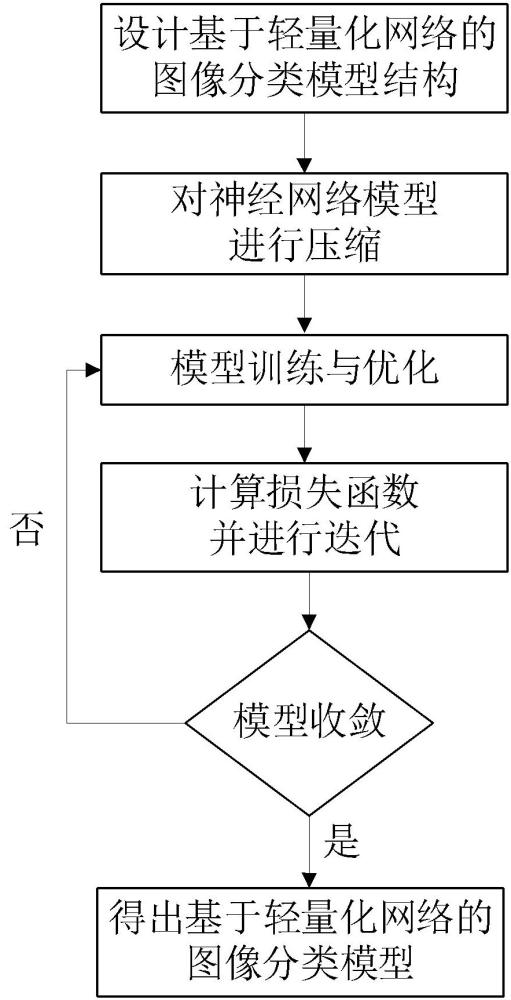 本发明公开了一种基于轻量化网络的图像分类方法和系统。传统的图像分类算法在边缘设备上运行时面临着资源占用较大、计算复杂度高的问题,为此,本发明提出了一种基于轻量化神经网络模型的图像分类方法,其包括以下步骤:首先设计适用于图像分类的网络结构配置,再采用参数剪枝技术对神经网络模型进行压缩,然后对其进行训练与优化,得到最终的基于轻量化网络的图像分类模型并将其部署至边缘设备,在边缘设备上实现实时图像分类,以满足图像处理的实际需求。该技术可广泛应用于边缘设备上的图像处理与分类任务,大大节省了人力成本,具有重要的实际应用价值。